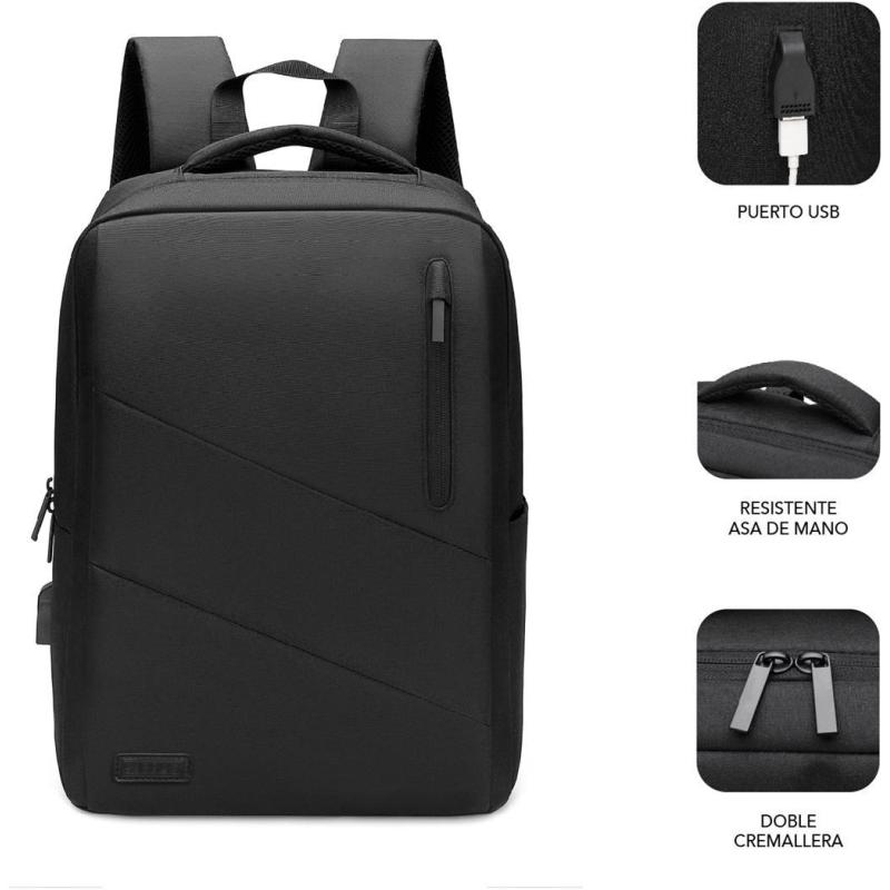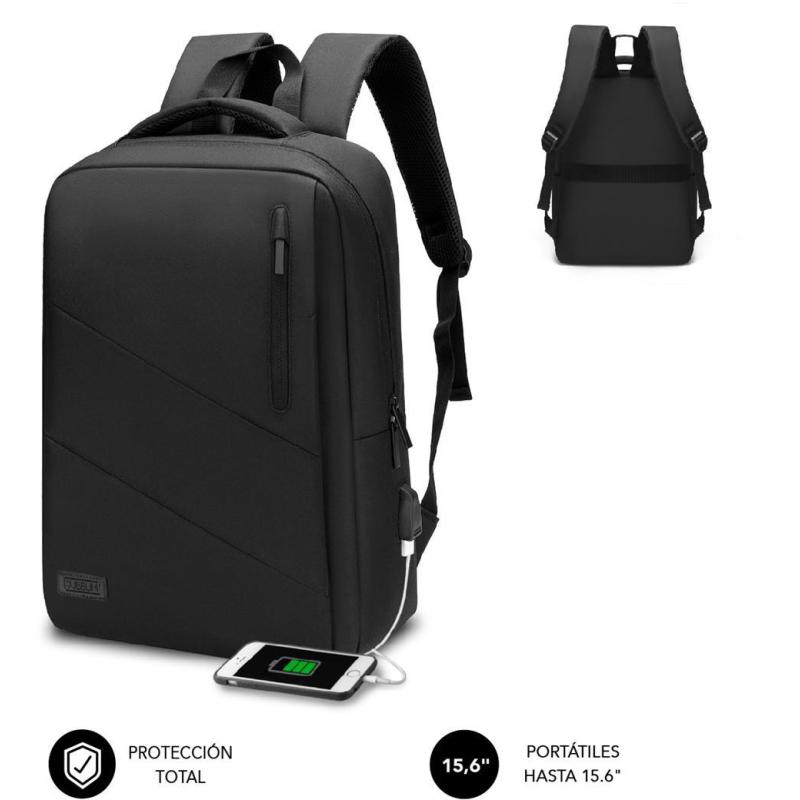 Mochila Subblim City Backpack para Portátil hasta 15.6" Resistente al agua con puerto USB bolsillos prácticos y diseño ligero en color Negro
