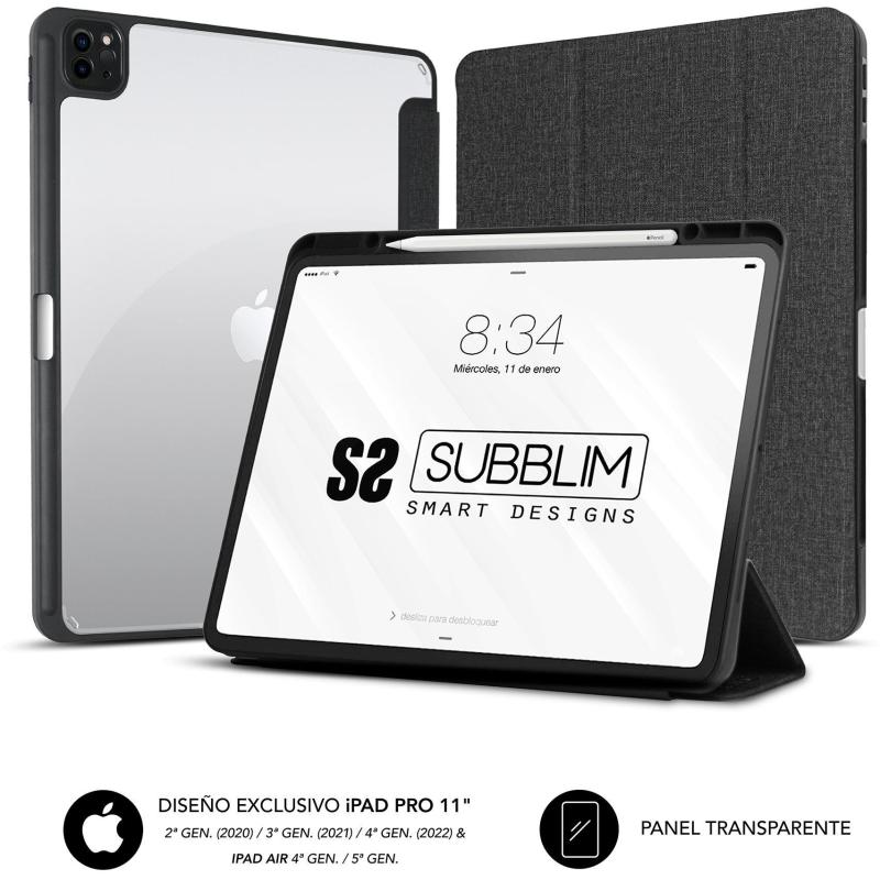 Funda para Tablet Subblim Clear Shock iPad Pro 11" 2022/2021/2020 Protección total soporte dual con porta bolígrafo Negro