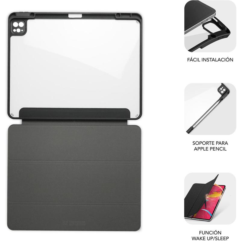 DISEÑO ELEGANTE Y FUNCIONAL: Su acabado en negro y transparente combina estilo y practicidad, adaptándose perfectamente a tu iPad Pro o iPad Air.