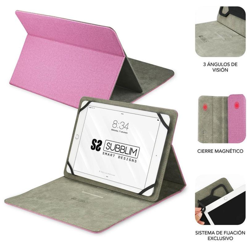Funda Subblim Clever Stand Diseño folio universal en Rosa, cierre magnético y 3 modos de soporte.
