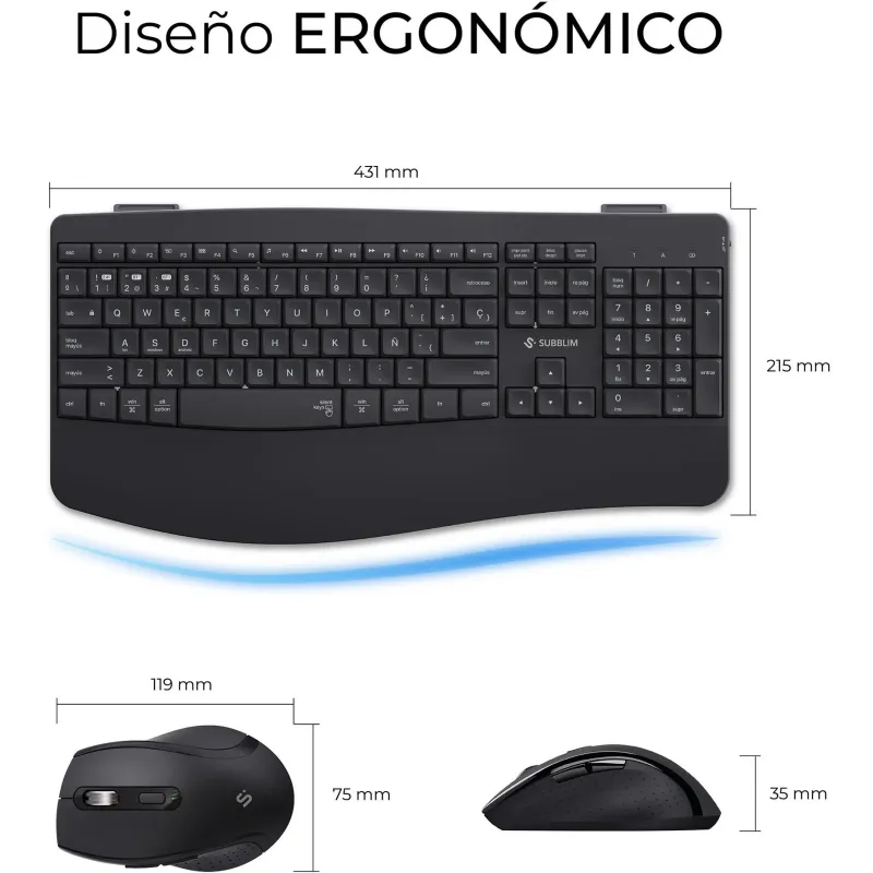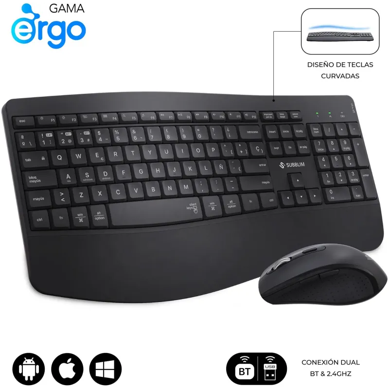 DESCUBRE LA EXPERIENCIA DEFINITIVA EN ERGONOMÍA Y USABILIDAD: Descubre la experiencia definitiva en ergonomía y usabilidad con el Combo Dual Prowave de SUBBLIM, un pack de teclado y ratón ergonómicos que cuidan tu salud postural y multiplican tu productividad. Diseñado para quienes pasan largas horas frente al ordenador, te ayuda a mantener una postura más cómoda y natural, reduciendo la fatiga en las muñecas a la vez que mejora la precisión en tus tareas diarias. Gracias a su conectividad avanzada, su diseño inteligente y sus múltiples prestaciones, disfrutarás de un entorno de trabajo o de ocio sumamente eficiente, silencioso y adaptable a cualquier espacio. Con el Combo Dual Prowave, SUBBLIM pone al alcance de tu mano la perfecta combinación de confort, rendimiento y versatilidad, para que disfrutes de una jornada más relajada y productiva.