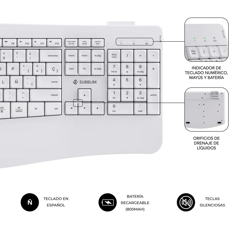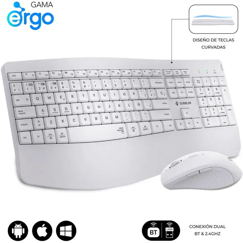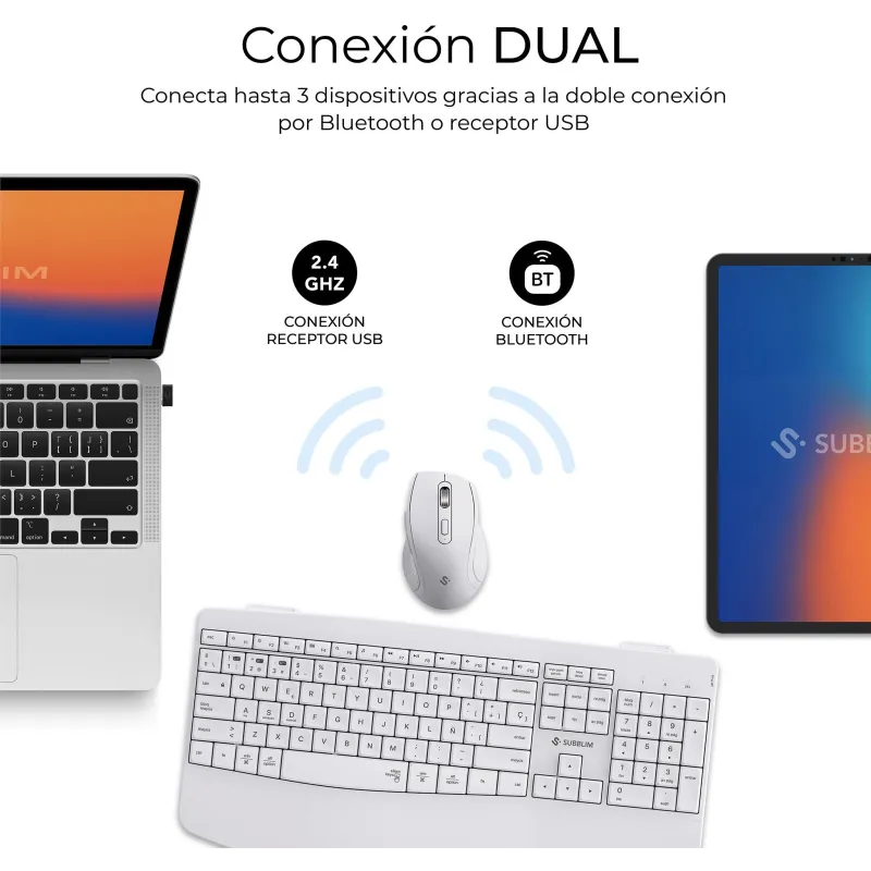 Teclado con ratón Subblim COMBO DUAL OFFICE PROWAVE WHITE conexión dual diseño ergonómico batería recargable