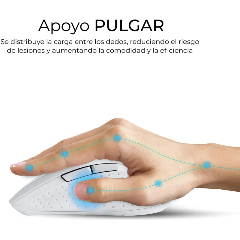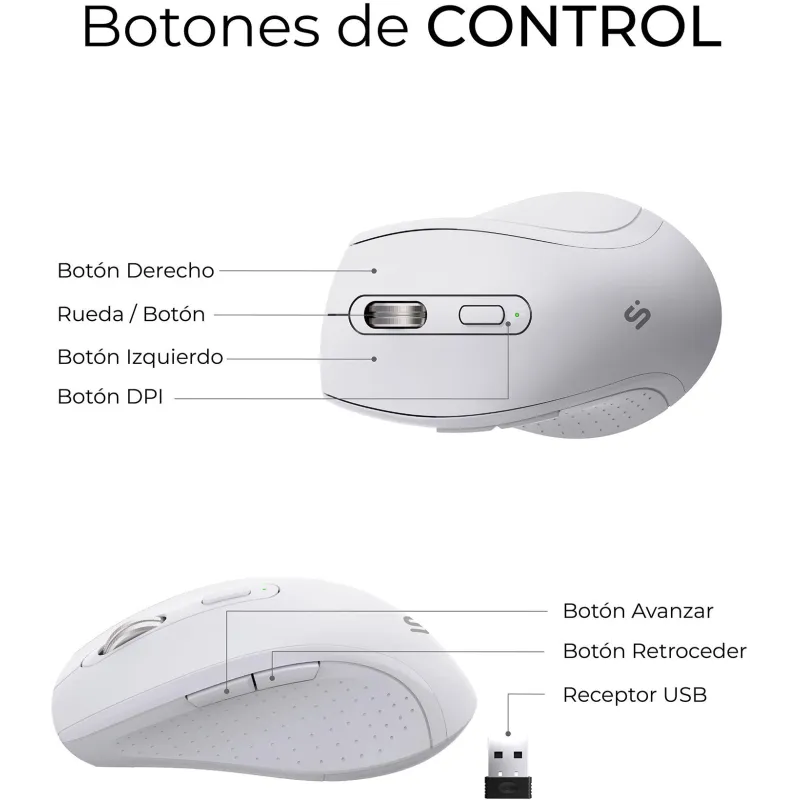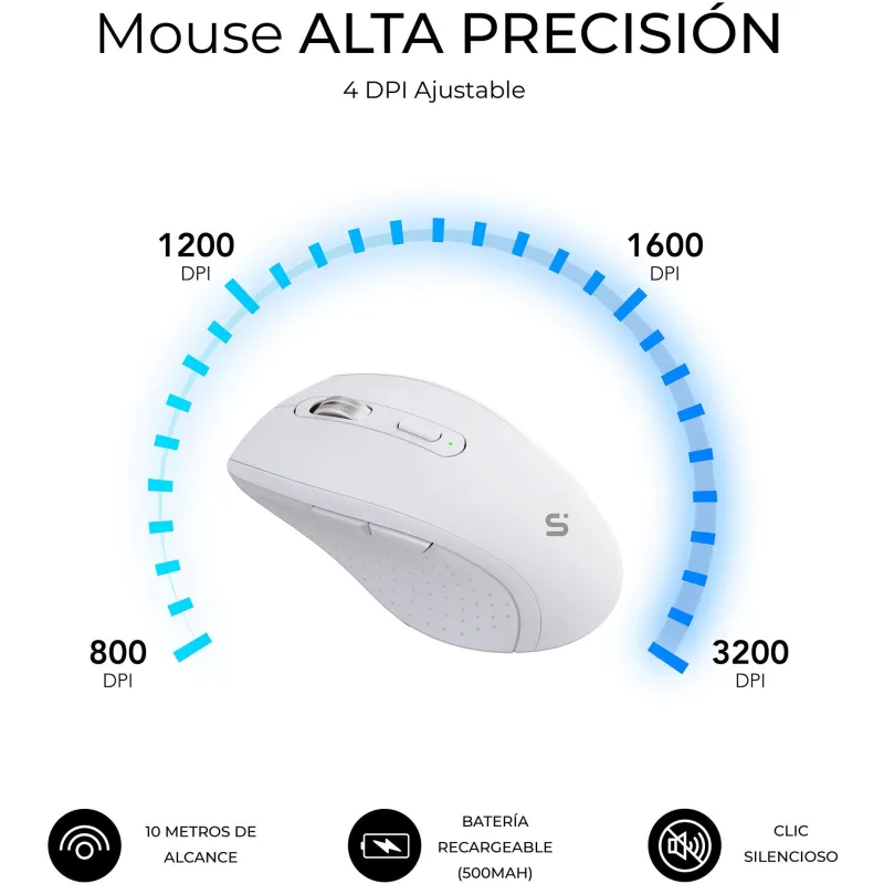 RATÓN DE ALTO RENDIMIENTO CON RESOLUCIÓN 3200 DPI: El ratón incluido en el Teclado con ratón Subblim COMBO DUAL OFFICE PROWAVE WHITE está diseñado para ofrecer precisión y fluidez en cada movimiento. Con una resolución 3200 DPI, se adapta a distintos niveles de sensibilidad, ideal tanto para tareas de oficina como para navegación intensiva. Su diseño para mano derecha y los 6 botones funcionales permiten un control total, incluyendo funciones como avance, retroceso y desplazamiento clicable. La batería integrada de 500 mAh se recarga fácilmente mediante USB tipo C, lo que elimina la necesidad de pilas desechables y mejora la sostenibilidad del producto.