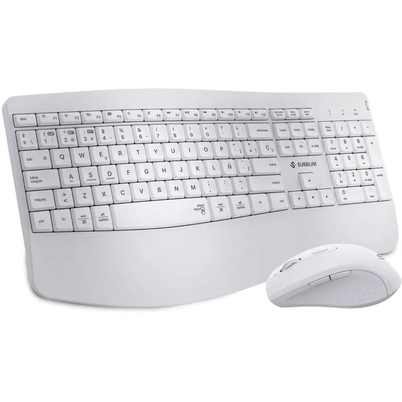 El Teclado con ratón Subblim COMBO DUAL OFFICE PROWAVE WHITE es una solución completa y versátil para quienes buscan rendimiento y comodidad en el entorno de trabajo o en casa. Este conjunto inalámbrico combina conectividad RF Wireless + Bluetooth para mayor compatibilidad con múltiples dispositivos, incluyendo sistemas Windows, Mac, Android e iPadOS. El teclado ofrece un diseño curvo y ergonómico, con perfil bajo y formato completo (100%) en disposición QWERTY en español. Su construcción con material ABS garantiza durabilidad, mientras que las teclas multimedia y de Windows aportan funcionalidad adicional. Además, incorpora una batería 800 mAh recargable mediante USB tipo C, con indicadores LED que informan del estado de la batería y la conexión Bluetooth.
