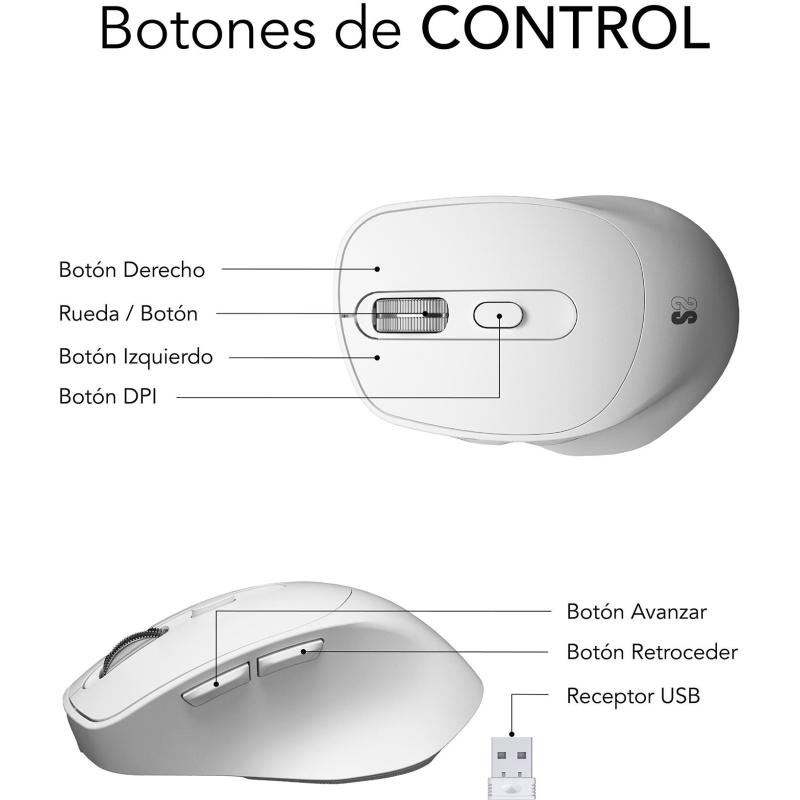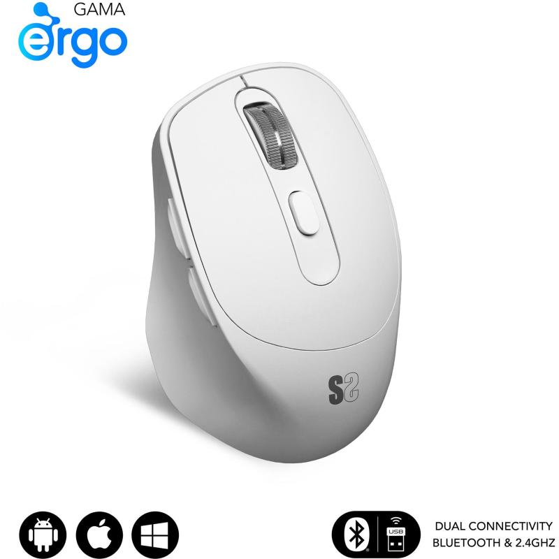 Ratón Subblim Comfort Ergo Dual Inalámbrico Bluetooth 5.2 y RF 2.4GHz Diseño ergonómico en color Blanco, batería recargable de 500 mAh