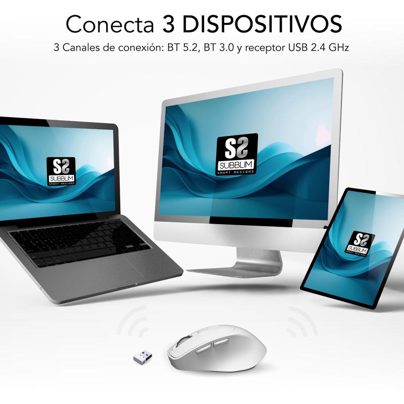 Ratón Subblim Comfort Ergo Dual Inalámbrico Bluetooth 5.2 y RF 2.4GHz Diseño ergonómico y batería recargable de 500 mAh