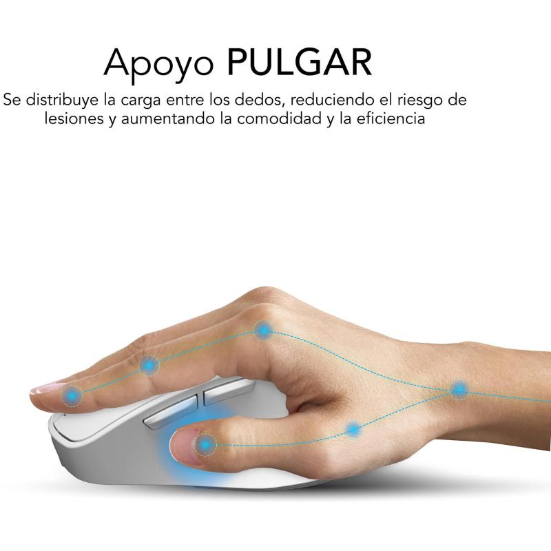 APOYO PULGAR: El apoyo del pulgar en los ratones ofrece comodidad, mejor agarre, prevención de lesiones y mayor precisión al proporcionar un soporte adicional para la mano durante el uso, lo que permite una postura más ergonómica y un control más preciso del cursor.