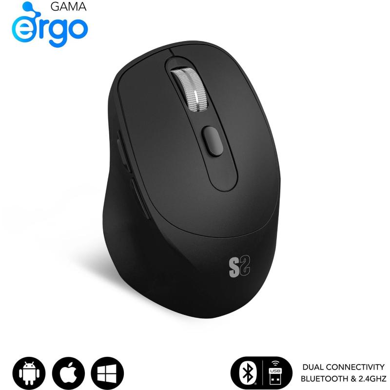 Ratón Subblim Comfort Ergo Dual Inalámbrico Bluetooth 5.2 y RF 2.4GHz Diseño ergonómico en color Negro, batería recargable de 500 mAh