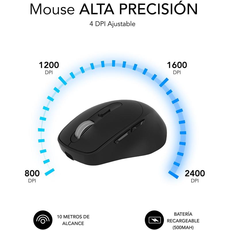 PRECISIÓN ÓPTICA EN TUS MANOS: Disfruta de un ratón con tecnología óptica avanzada y resolución ajustable de hasta 2400 DPI, ideal para tareas que requieren máxima precisión y fluidez.