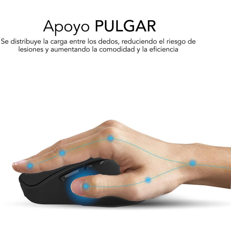 APOYO PULGAR: El apoyo del pulgar en los ratones ofrece comodidad, mejor agarre, prevención de lesiones y mayor precisión al proporcionar un soporte adicional para la mano durante el uso, lo que permite una postura más ergonómica y un control más preciso del cursor.