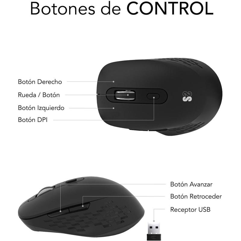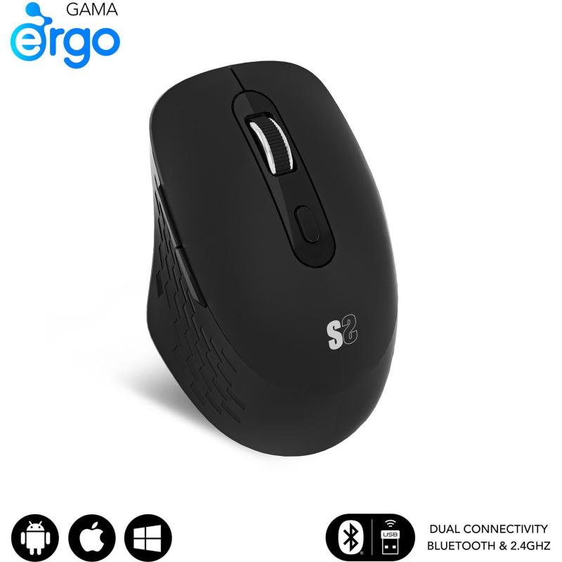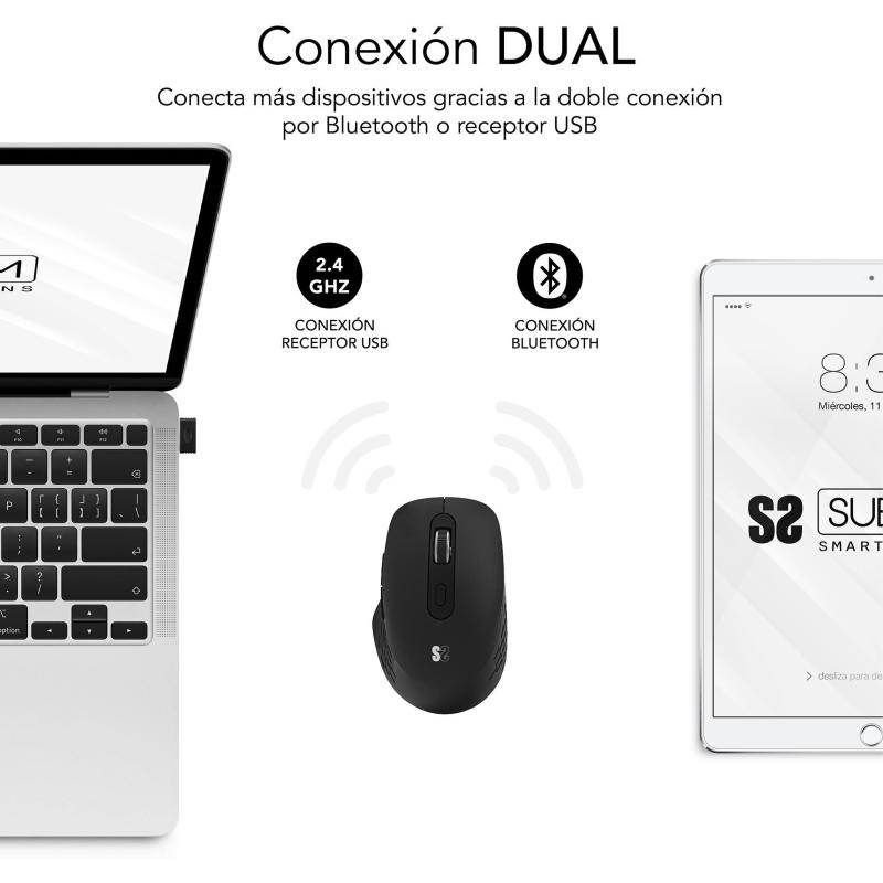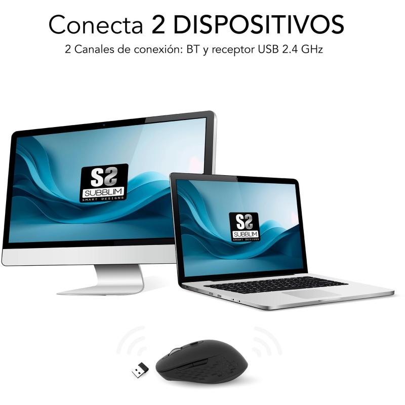 Ratón Subblim Curve Ergo Dual Inalámbrico con Bluetooth 5.2 y RF 2.4GHz 1600DPI Diseño ergonómico en Negro, 6 botones, batería recargable