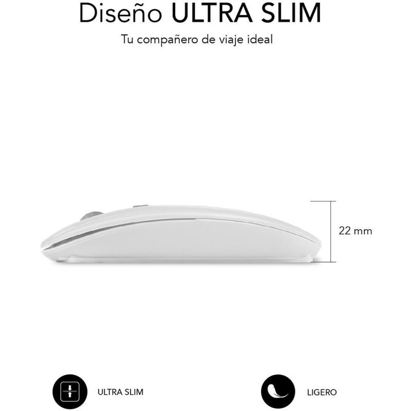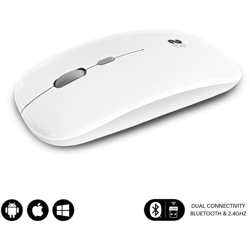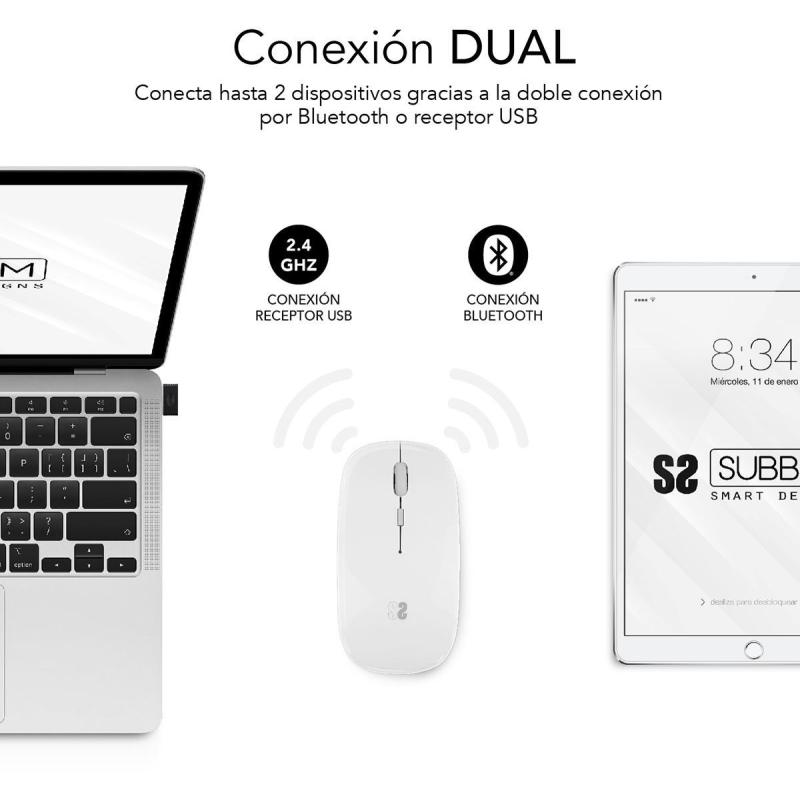 Ratón Subblim Dual Flat Óptico Inalámbrico 2.4GHz y Bluetooth 5.2 diseño ergonómico, clic silencioso 1600 DPI, Blanco