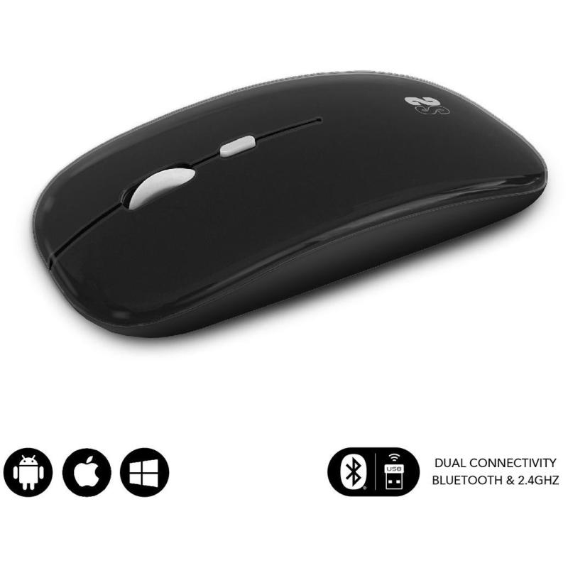Ratón Subblim Dual Flat Óptico Inalámbrico 2.4GHz y Bluetooth 5.2 diseño ergonómico, clic silencioso 1600 DPI, Negro