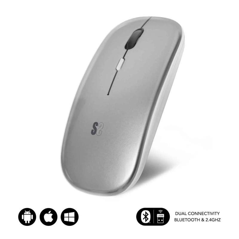 Ratón Subblim Dual Flat Óptico Inalámbrico 2.4GHz y Bluetooth 5.2 diseño ergonómico, clic silencioso 1600 DPI, Plata