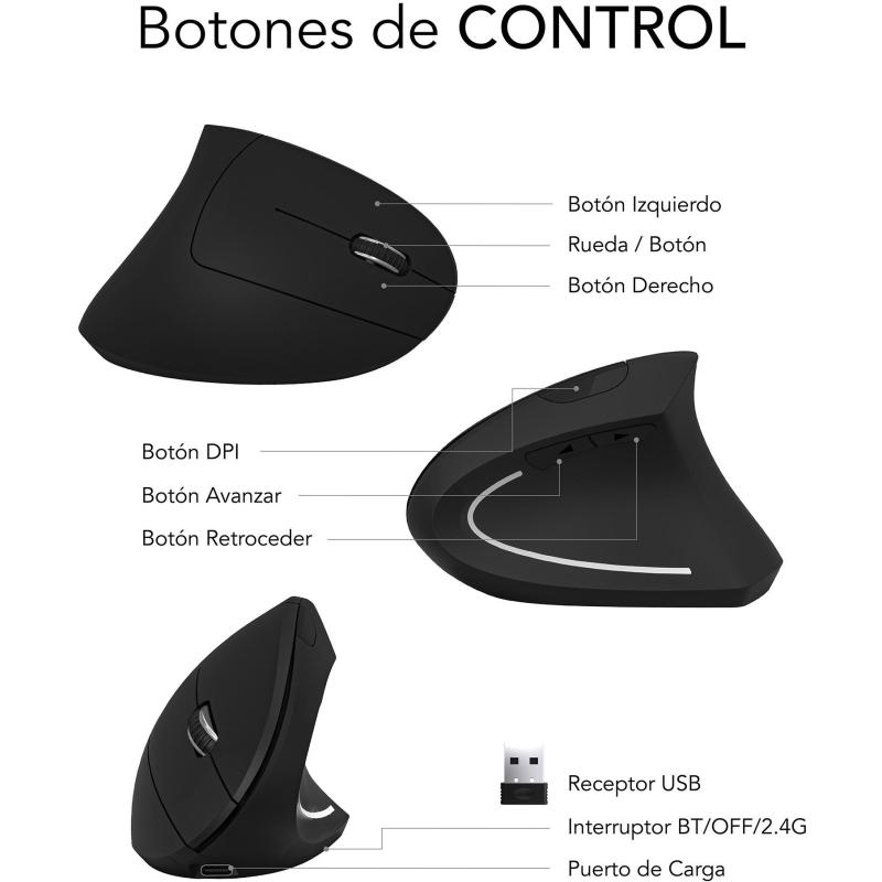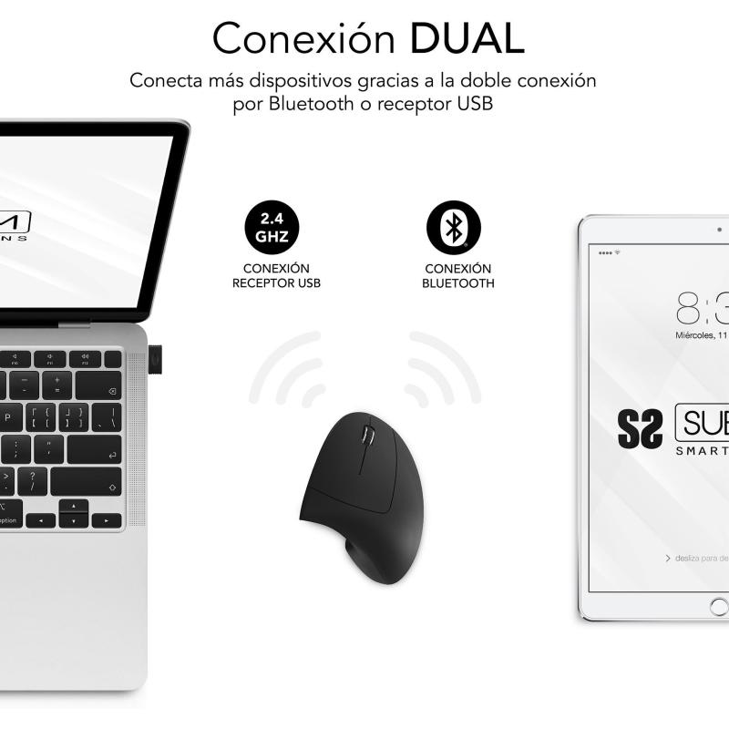 Ratón Subblim Glide Vertical Ergo Dual Diseño Ergonómico 6 botones programables Bluetooth 5.2 y RF 2.4GHz, batería de 500 mAh