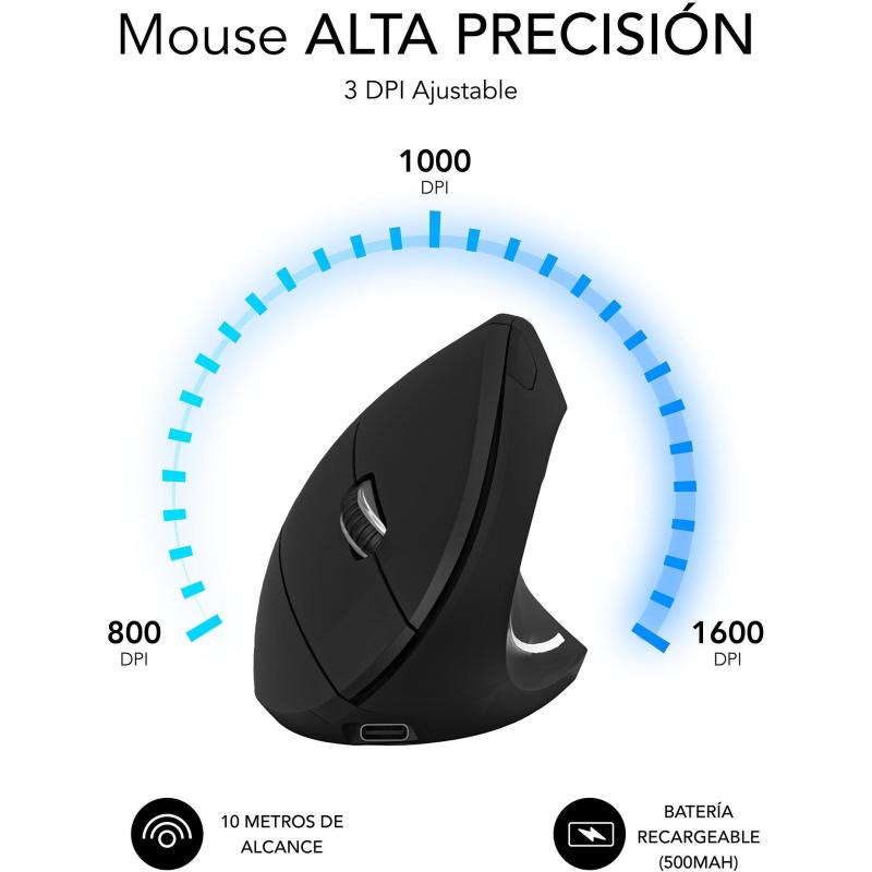 Subblim Glide Vertical Ergo Dual Ratón Vertical Ergonómico Inalámbrico para Diestros 1600 DPI Negro