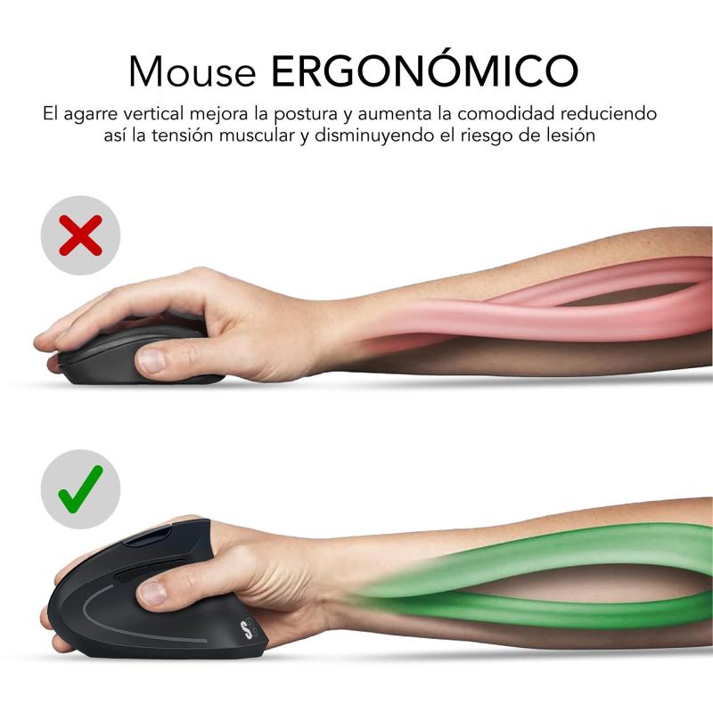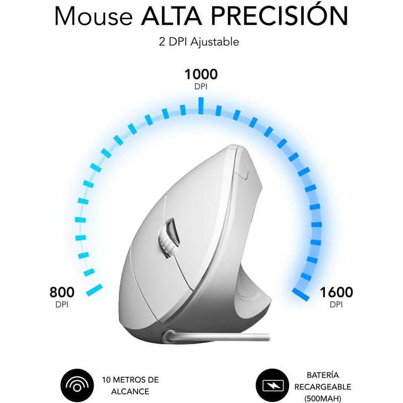 Ratón Subblim Glide Vertical Ergo Diseño ergonómico vertical, 6 botones programables con clic silencioso y 1600 DPI