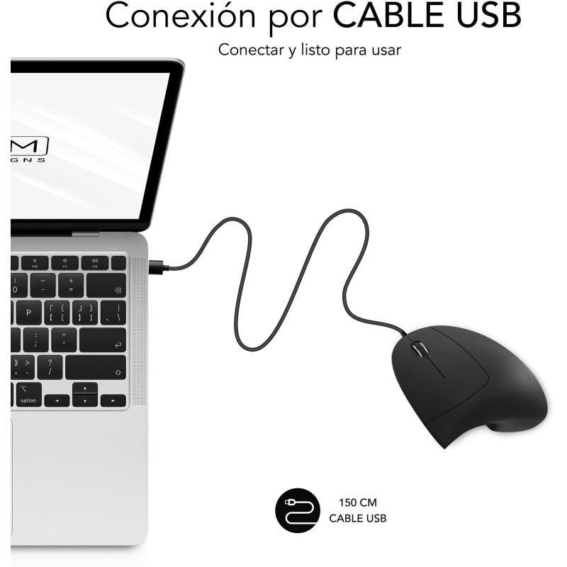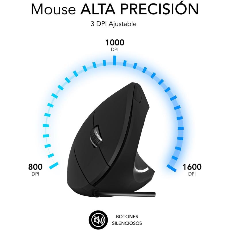 Ratón Subblim GLIDE VERTICAL ERGO WIRED diseño ergonómico vertical 6 botones clic silencioso 1600 DPI USB-A, color Negro