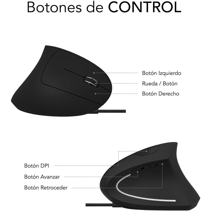 Ratón Subblim GLIDE VERTICAL ERGO WIRED diseño ergonómico vertical 6 botones clic silencioso 1600 DPI USB-A