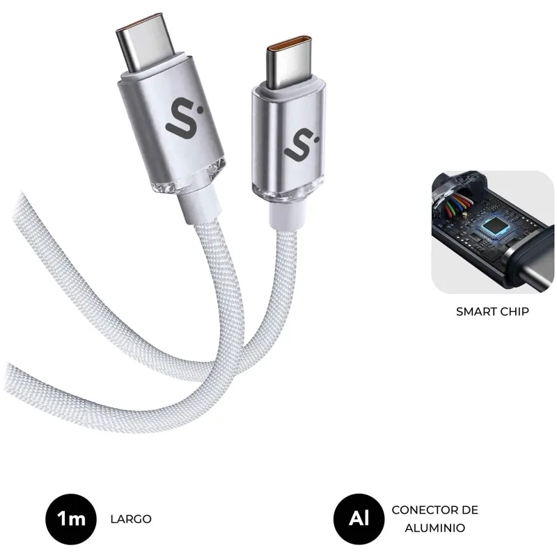 El diseño trenzado reduce enredos y previene daños por doblado continuo, mientras que el chip inteligente integrado protege tus dispositivos de sobrecalentamientos y sobrecargas. Ya sea que necesites cargar un iPhone 16, un Samsung Galaxy S24, un MacBook Pro/Air M3/M2/M1 o cualquier otro dispositivo USB tipo C, el SUBBLIM Cable USB C a USB C se convertirá en tu compañero indispensable.