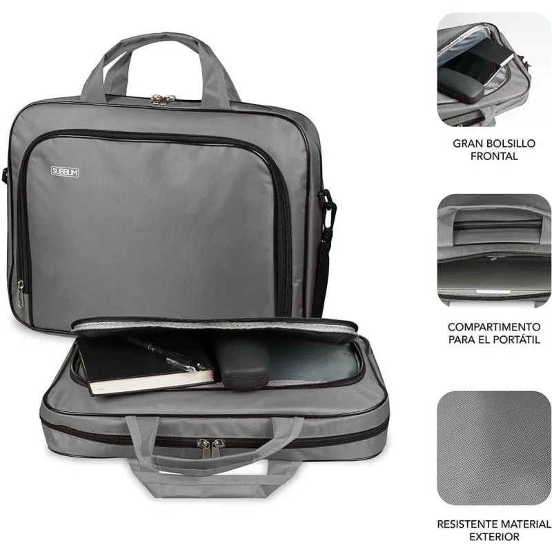 Maletín Subblim Oxford Gris para portátiles de 13.3" a 14", resistente a golpes y salpicaduras