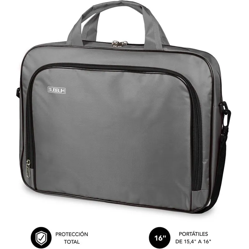 Maletín Subblim Oxford Gris para portátiles de 15.4" a 16", resistente a golpes y salpicaduras