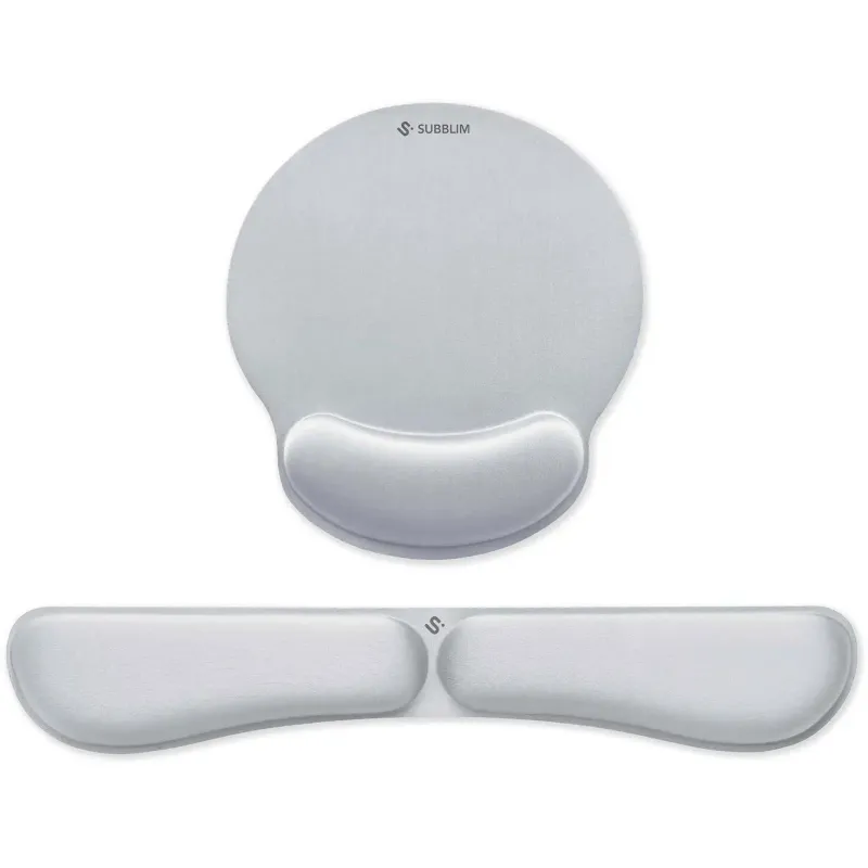 Subblim Pack Ergo Memoryflex Silver Alfombrilla con Reposamuñecas y Reposamuñecas de Teclado Blancos