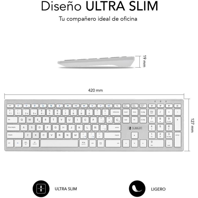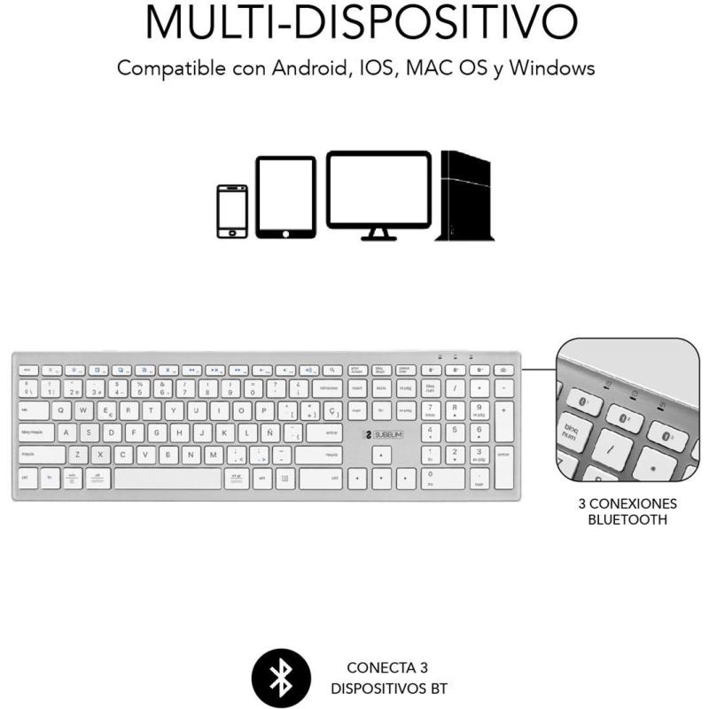 Subblim Pure Extended SUBKB-2PUE200 Teclado inalámbrico Bluetooth Plata