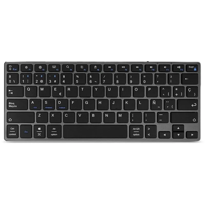 Descubre el teclado inalámbrico universal que redefine la manera en que te conectas con tus dispositivos. Con su tecnología de conectividad Bluetooth, este teclado ofrece una experiencia sin cables y una compatibilidad multidispositivo, permitiéndote alternar fácilmente entre hasta 3 dispositivos diferentes. Diseñado con un perfil bajo y un elegante acabado en aluminio negro y gris, este teclado no solo es estéticamente atractivo, sino también funcional. Las teclas de membrana y tijera garantizan una escritura suave y silenciosa, con una vida útil de 5 millones de caracteres. Equipado con teclas multimedia y de Windows, este teclado QWERTY en español es perfecto para cualquier usuario.