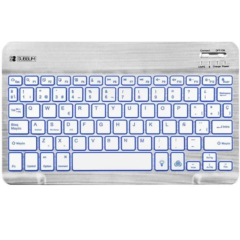 Descubre la experiencia de escritura definitiva con este teclado Subblim SUB-KBT-SMBL30 inalámbrico de diseño QWERTY en español que ofrece una increíble durabilidad de hasta 5 millones de caracteres. Su compatibilidad universal con cualquier dispositivo Bluetooth, incluyendo tablets, ordenadores, videoconsolas y Smart TVs, lo convierte en el compañero perfecto para cualquier entorno digital. Disfruta de una estética moderna con su acabado en plata y blanco y personaliza tu entorno de trabajo con la retroiluminación multicolor ajustable, ideal para cualquier momento del día o de la noche. La conectividad es un juego de niños gracias a su tecnología Bluetooth 3.0+HS y la eficiencia de Baja Energía (BLE), asegurando un uso prolongado y sin interrupciones. Alimentado por una batería de ión de litio de 420 mAh, brinda hasta 30 horas de uso continuo y un impresionante modo de espera de 45 días. La carga rápida de tan solo 2 horas a través de USB garantiza que vuelvas a la acción en poco tiempo. Este teclado no solo es funcional, sino también consciente del medio ambiente, cumpliendo con los estándares RoHS. Su construcción ligera con un peso de solo 205 g y dimensiones compactas aseguran portabilidad sin comprometer el rendimiento. Con funciones adicionales como el encendido/apagado automático y los indicadores LED de batería, actividad y conexión, este teclado es la elección ideal para quienes buscan un equilibrio perfecto entre estilo, rendimiento y sostenibilidad.