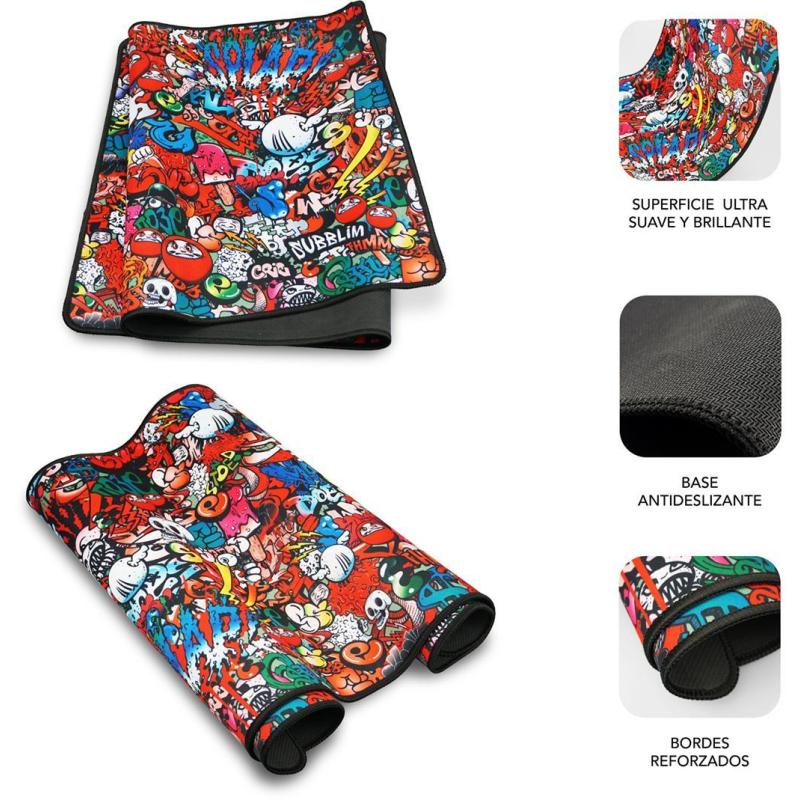 Alfombrilla Subblim SUB-MP-01PUW02 con tamaño XL de 900x400x30mm Diseño multicolor, base antiderrapante, bordes rematados. Graffiti