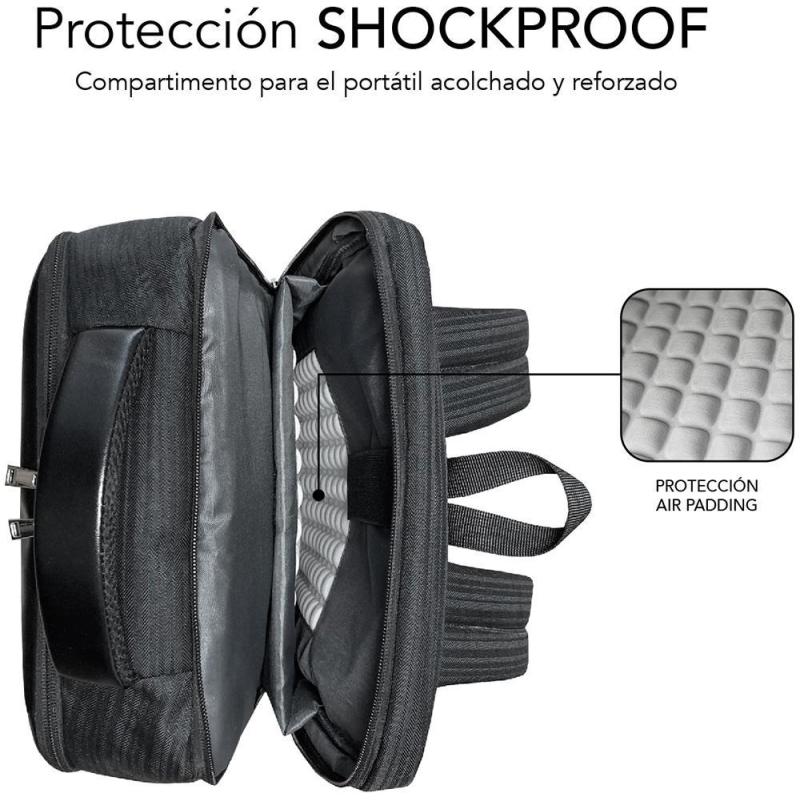 MOCHILA ESPECIALMENTE DISEÑADA PARA EL MUNDO LABORAL Y DE LOS NEGOCIOS: Gracias a su altísima calidad y comodidad, se convierte en tu mejor aliado de movilidad para ir con ella a cualquier lugar. Forma parte de la exclusiva gama Air Padding de SUBBLIM con lo que tu portátil estará especialmente protegido. A todo ello se le suman diferentes departamentos y bolsillos para transportar todos tus accesorios, documentos o enseres personales. Ha sido fabricada con unos resistentes materiales que repelen el agua y cuenta con un puerto externo de carga USB para que puedas suministrar energía a tus dispositivos.