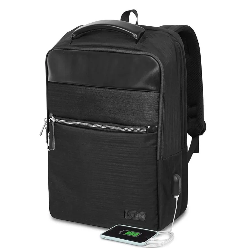 Mochila Subblim SUBBP-2BL1015 con puerto USB integrado, tamaño máximo de pantalla 40,6 cm, diseño monocromo y asa de transporte cómoda