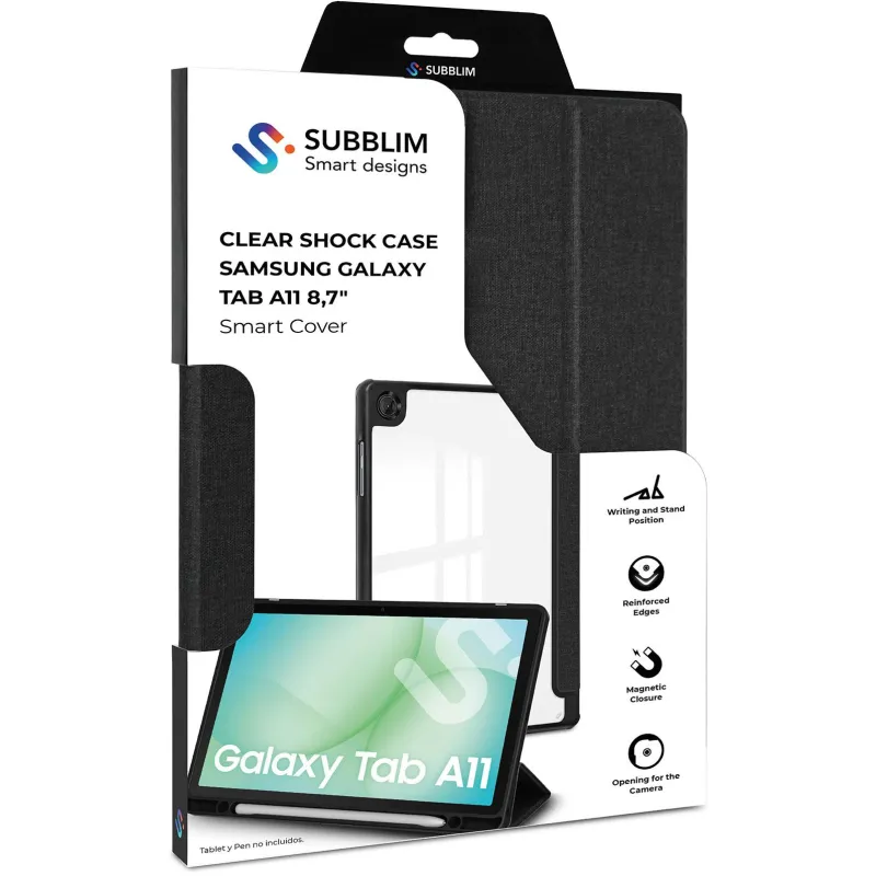 La SUBBLIM SUBCST-5SC040 Clear Shock Case es una funda folio de poliuretano para Samsung Galaxy Tab A11+ 11" con cierre de solapa y protección contra golpes, polvo, rayones y salpicaduras.