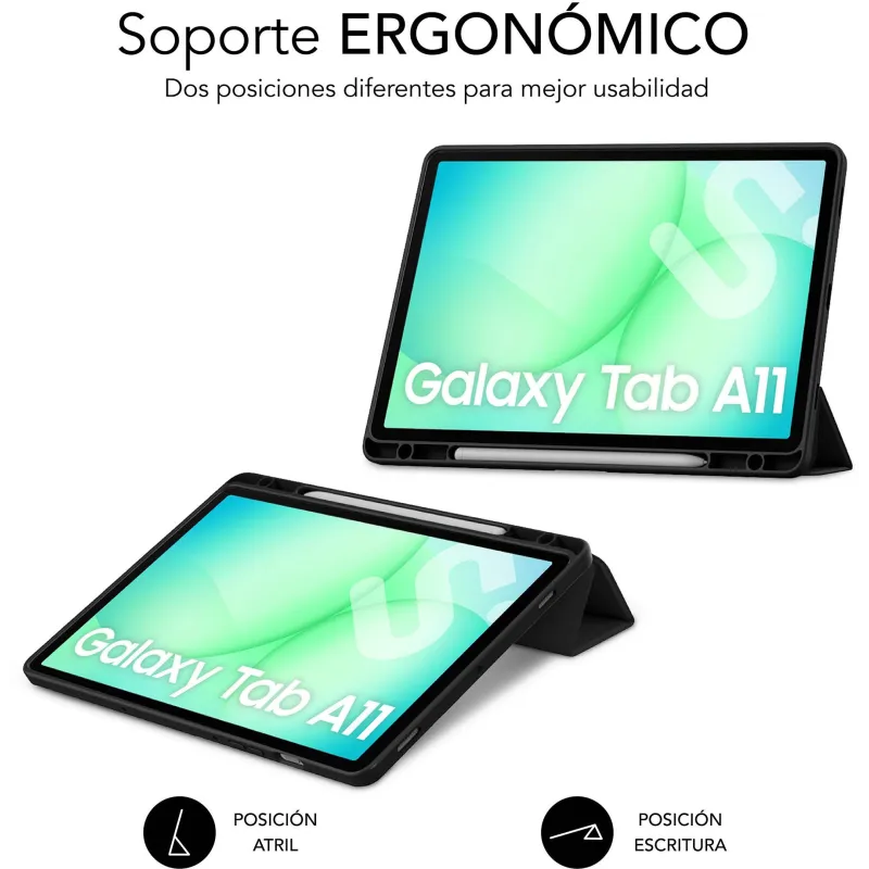 Está orientada a Samsung Galaxy Tab A11+ 11" para un ajuste más coherente que el de fundas genéricas.