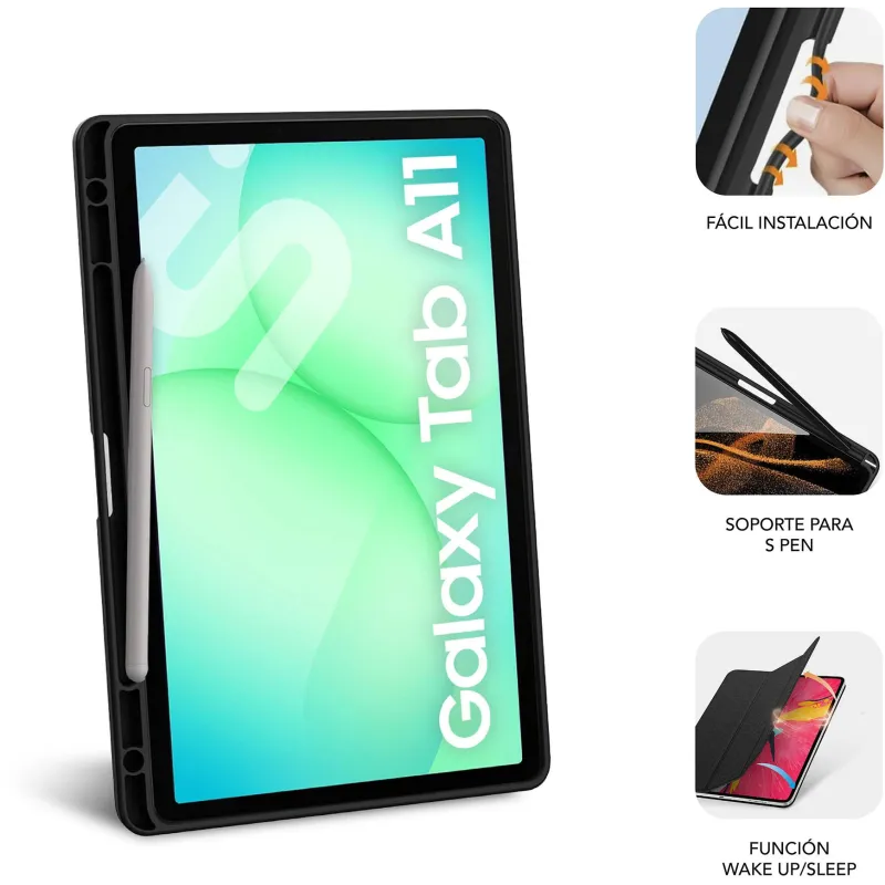 Antes de comprar, lo más importante es la compatibilidad: el fabricante declara Samsung Galaxy Tab A11+ 11". Si tu tablet es otra variante de la familia, puede cambiar el encaje de cámara o botones.