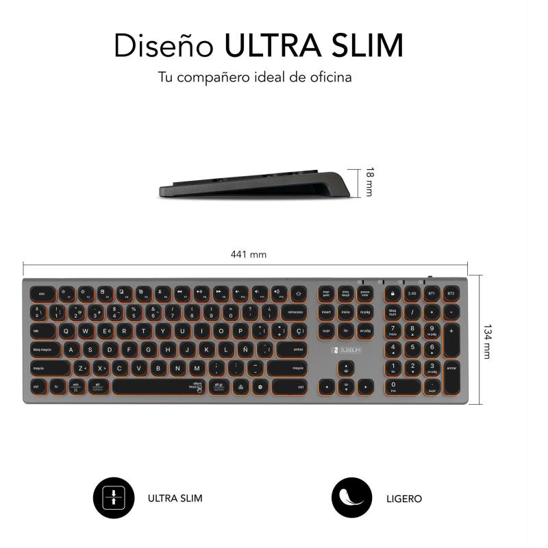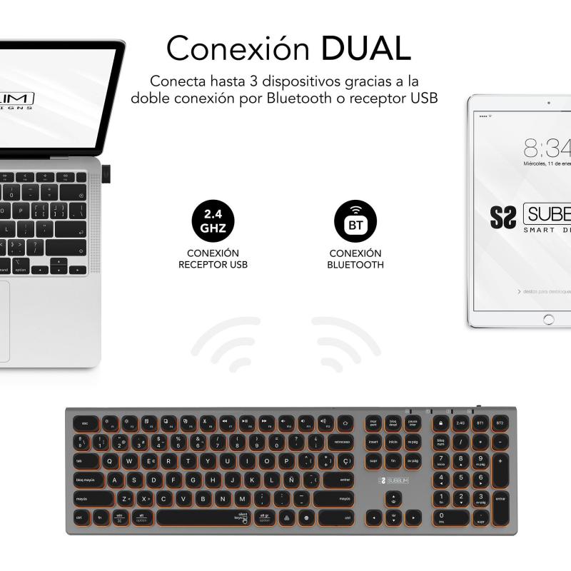 SUBBLIM SUBKB-3MIE310 Teclado Inalámbrico Bluetooth/2.4GHz Master Iluminado Gris/Negro