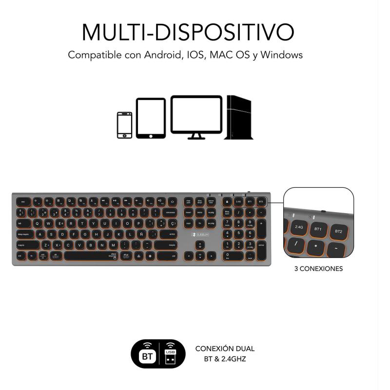 Subblim SUBKB-3MIE310 Teclado Inalámbrico Bluetooth/2.4GHz Master Iluminado Gris/Negro