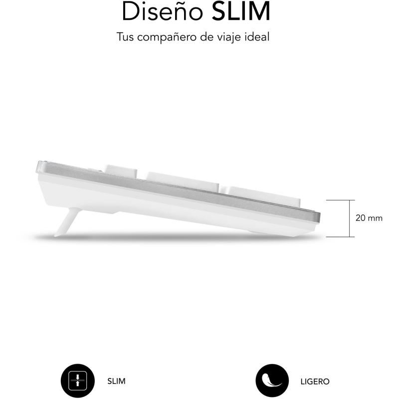 DISEÑO PLANO Y COMPLETO: Teclado de diseño plano y elegante con solo 25m de grosor con soportes de inclinación ajustables que hace más agradable un uso continuado. Incorpora teclado numérico para introducir datos más fácilmente en hojas de cálculo o programas de contabilidad y finanzas.