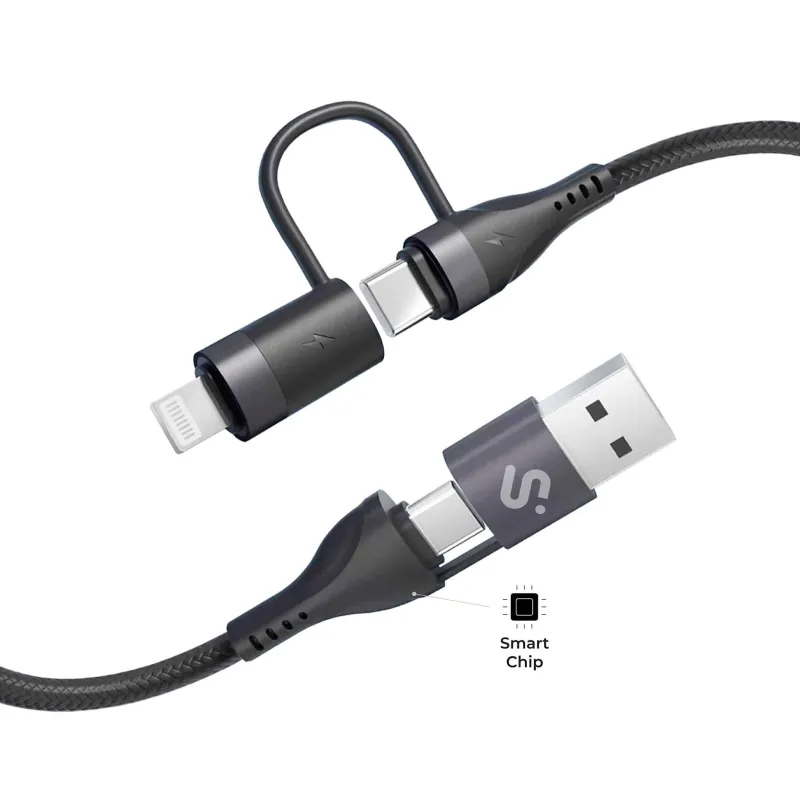 Subblim TOP 4IN1 60W C-C-L-A Cable USB-C y USB-A 1M Negro