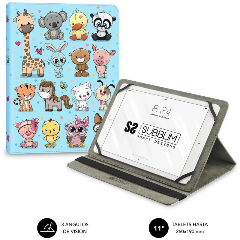 Funda para tablet Subblim Trendy Case Animals compatible con pantalla 11 pulgadas, fabricada en material poliuretano, resistente al agua y a rayones