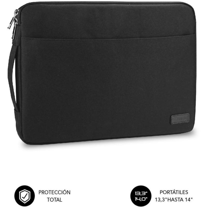 Funda Subblim Urban SUB-LS-0PS0001 Elegante funda negra de poliéster para portátiles de hasta 14" Ligera resistente a golpes rayones y salpicaduras.