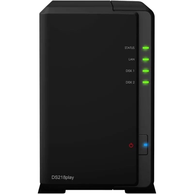 SYNOLOGY DISKSTATION DS218PLAY: Synology DiskStation DS218play es una torre con múltiples funciones, de dos bahías equipada con un procesador de cuatro núcleos de 64 bits. Con potentes capacidades de procesamiento multimedia, DS218play soporta la transcodificación en tiempo real del contenido de origen en 4K Ultra HD y es perfecto para la transmisión multimedia y el uso compartido de archivos para usuarios domésticos. Synology DS218play está respaldada por la garantía limitada de 2 años de Synology.