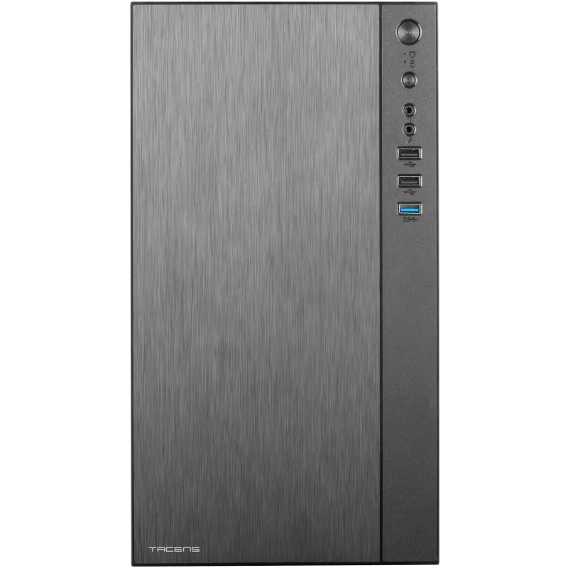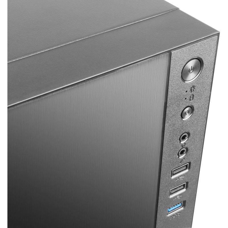 Este PC Mini Tower destaca por su elegante diseño en aluminio y color negro, ideal para entornos profesionales y personales. Compatible con tarjetas madre micro ATX y Mini-ITX, ofrece flexibilidad en la configuración. Cuenta con 2 bahías de 3.5” y 4 bahías de 2.5”, permitiendo un almacenamiento robusto y variado. Las 4 ranuras de expansión facilitan futuras actualizaciones, mientras que los botones de encendido/apagado y restaurar permiten un uso sencillo.