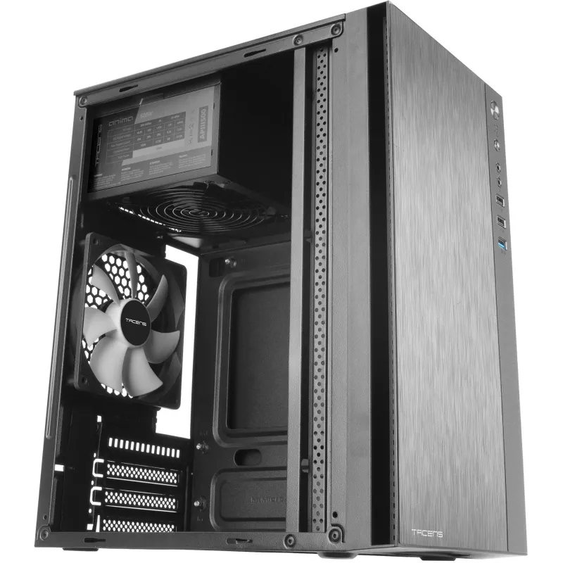 Este innovador Mini Tower destaca por su elegante diseño de aluminio en un sofisticado color negro, compatible con tarjetas madre micro ATX y Mini-ITX. Cuenta con 2 puertos 3.5" y 4 bahías 2.5", además de 4 ranuras de expansión para una máxima versatilidad. Incluye botones de restaurar y encendido/apagado, soportando una altura máxima de CPU de 16 cm y una longitud de tarjeta gráfica de hasta 26 cm.
