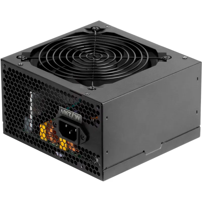 Diseñada para PCs, esta PSU ATX incluye un conector de alimentación de 20+4 pines para la tarjeta madre, dos conectores de energía SATA y dos conectores de alimentación PATA, además de un conector de alimentación EPS (4+4 pines). Aunque no es modular, su diseño en color negro y su ventilador de 12 cm aseguran un funcionamiento silencioso con un nivel de ruido de solo 14 dB.