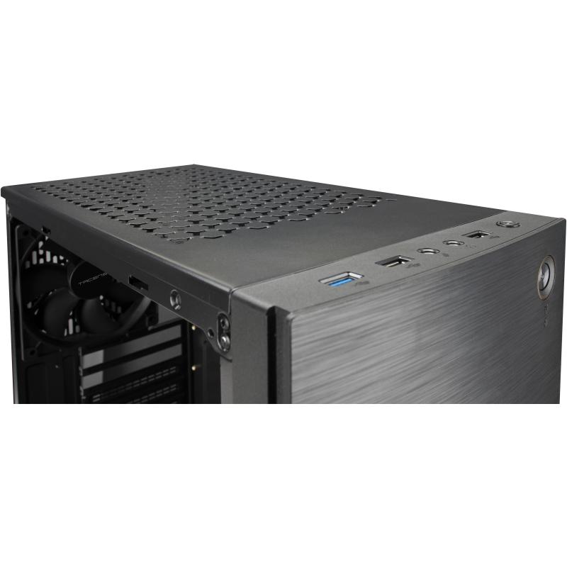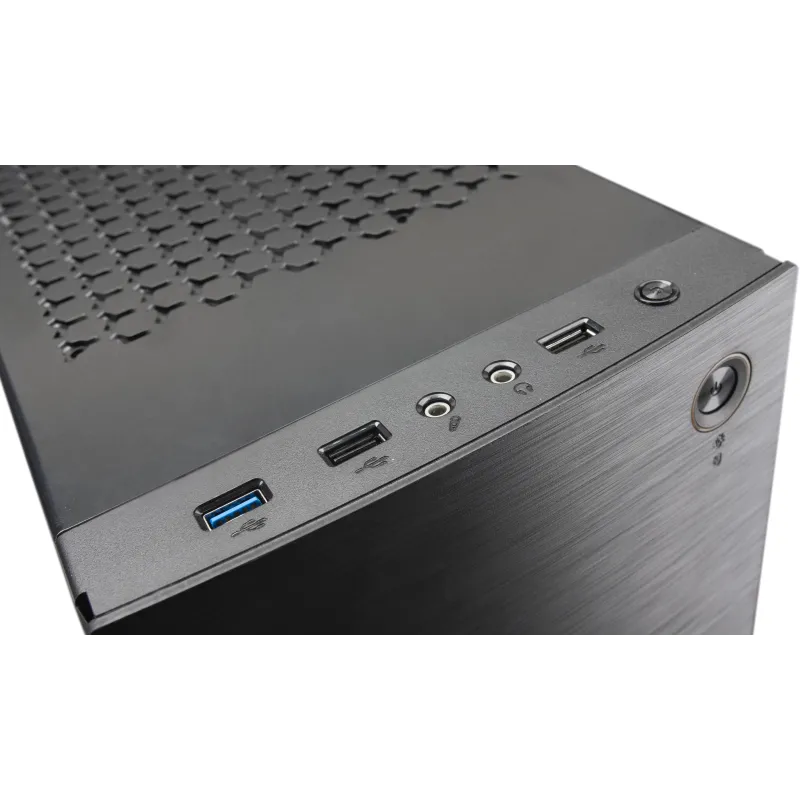 El chasis de este PC está fabricado en aluminio, ofreciendo no solo un diseño elegante en color negro, sino también una durabilidad excepcional. Compatible con tarjetas madre de factor de forma ATX, micro ATX y Mini-ITX, este chasis es increíblemente versátil. Dispone de 2 puertos de 3.5" y 2 bahías de 2.5", además de 7 ranuras de expansión, lo que facilita la personalización y expansión del sistema. La gestión de cables está optimizada para mantener el interior ordenado y mejorar el flujo de aire.