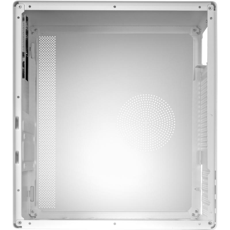 La fuente de alimentación no está incluida, pero es compatible con fuentes de alimentación SFX ubicadas en la parte superior del chasis. Con dimensiones de 146 mm de ancho, 320 mm de profundidad y 332 mm de altura, y un peso ligero de 2.1 kg, este PC es fácil de manejar e instalar.