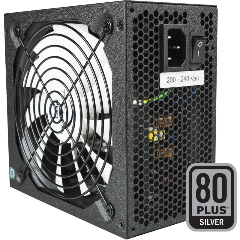 Diseñada para PCs, tiene la certificación 80 PLUS Silver, lo que asegura una alta eficiencia energética. Su factor de forma es ATX y produce un nivel de ruido de solo 12 dB, lo que la hace extremadamente silenciosa. El sistema de enfriamiento activo incluye un ventilador de 14 cm que asegura una adecuada disipación de calor. El producto es de color negro y cuenta con un interruptor de encendido/apagado integrado.
