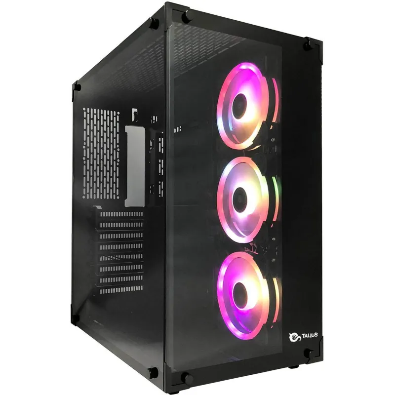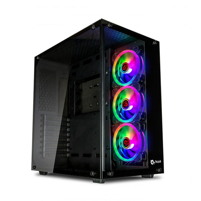 Torre Talius Cronos Cristal Templado USB 3.0 RGB ,con paneles de cristal templado y USB 3.0. Compatible con placas ATX, EATX y micro ATX.  En color negro. 3 ventiladores preinstalados.